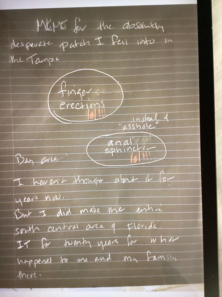 ”This type of botch and many others survive on martinis and cocaine, the best clothing they can afford…oysters and sushi. This is the kind that got me all screwed up…. (I can’t read the rest).